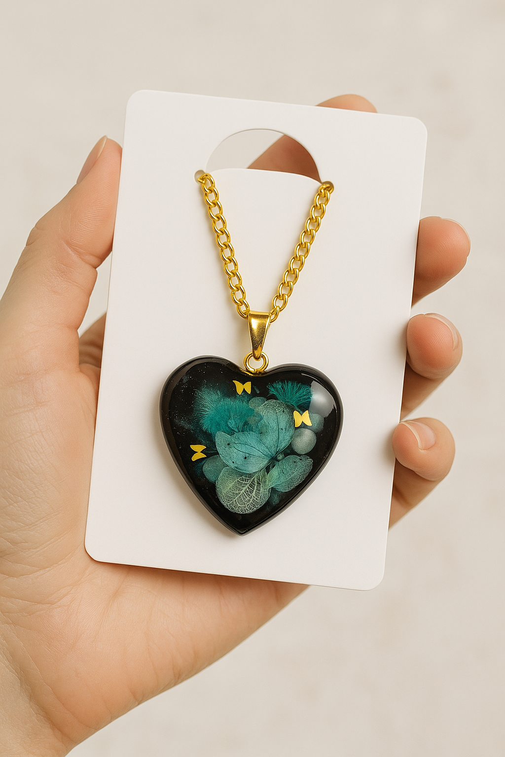 Celebrate individuality with our handmade resin pendant, designed for those who love jewelry that tells a story. Each pendant is lovingly poured, shaped, and polished by hand using high-quality epoxy resin — ensuring a crystal-clear, glass-like shine that captures every detail beautifully.