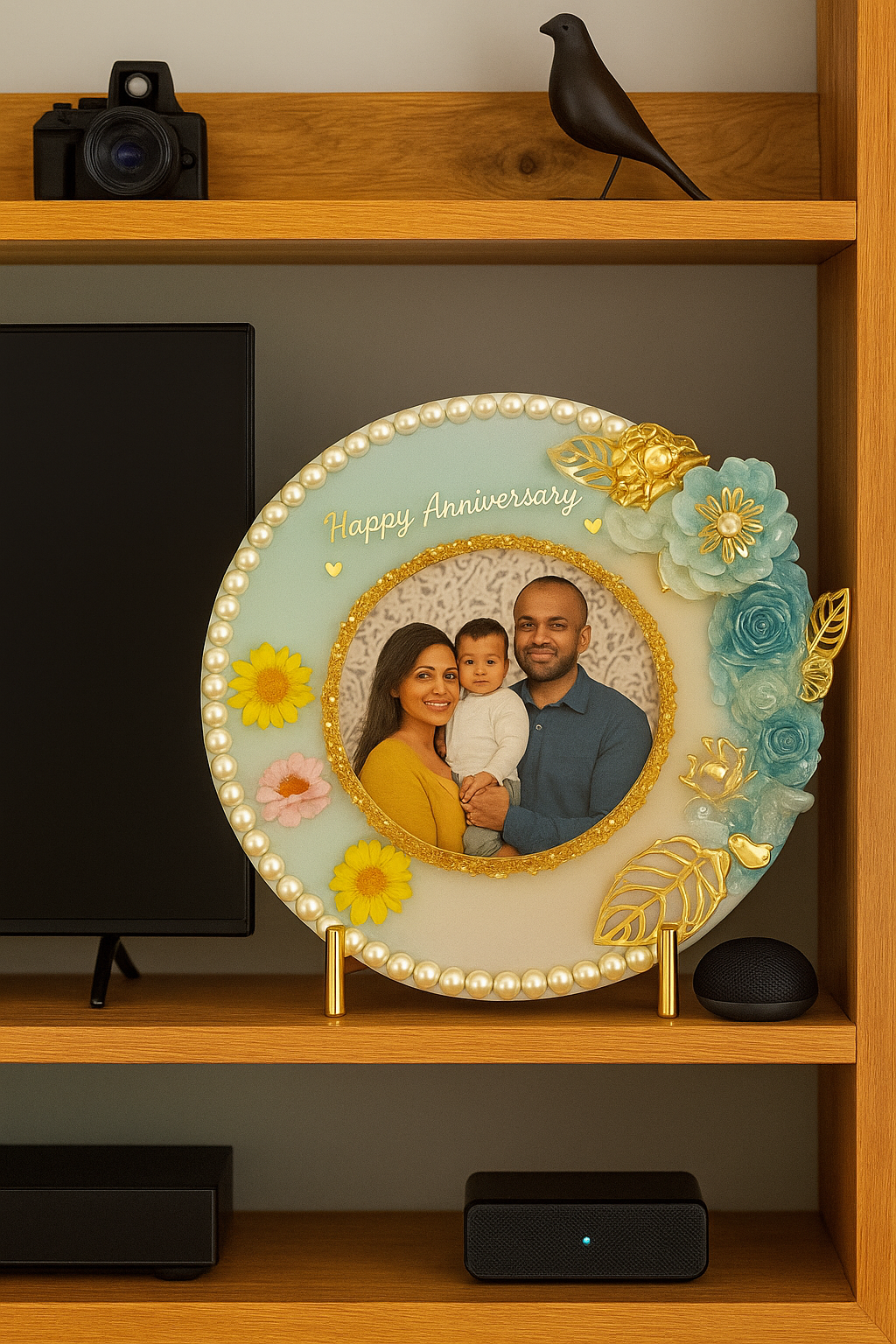 Crafted from premium-quality resin, these frames feature a crystal-clear, glass-like shine that beautifully complements your photos. Choose from elegant designs with dried flowers, gold leaf, shells, or personalized color blends, making each piece a small work of art.